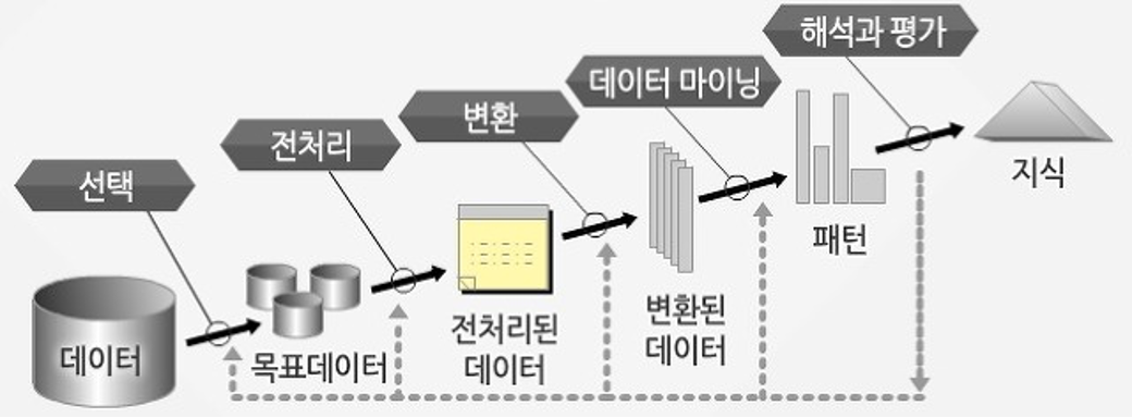 - 대량의 데이터에 고급 통계 분석과 모델링 기법을 적용하여 데이터 간의 패턴과 관계를 도출, 의사결정에 활용할 수 있는 의미 있는 정보를 발견하는 과정