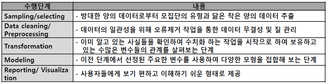 | 공통점 | -데이터 사이의 새로운 관계를 찾아내는 과정 -Data Warehouse의 활용을 높이는 방안 |